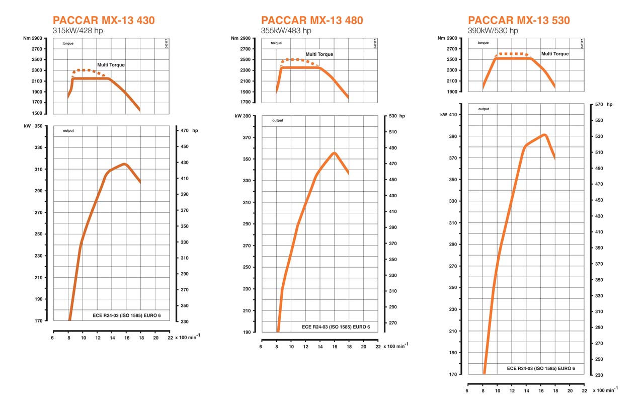 De hecho, con el nuevo motor de 480 CV, el mx13 que sustituye al anterior 460, en condiciones de carga intermedia o con variantes de gran volumen se puede mejorar el rendimiento del anterior modelo hasta en un 9 por ciento.