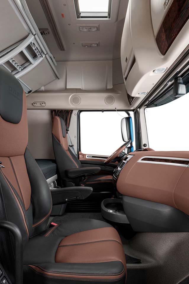 La cabina XF Super Space Cab se mantiene como la más amplia del mercado, idónea para largas rutas.