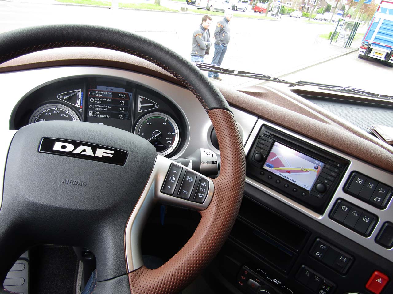 Mercedes Benz en sus Actros y durante algún tiempo MAN ya nos habían ofrecido soluciones en las que el par motor máximo variaba, según diferentes parámetros, para incrementar el rendimiento de sus vehículos. DAF en su anterior generación realizaba algo parecido, que quienes de vosotros leáis más atentamente nuestra spruebas ya conoceréis nuestra opinión de dicho sistema. Lo que hacía DAF era limitar el par motor en todas las marchas de la caja de cambios salvo en la última relación. Así la mecánica siempre trataba de llegar lo antes posible a la relación directa, la 12, donde el funcionamiento es más eficiente. Eso resulta perfecto en un tramo de ruta llano, lo usual en Holanda, pero no tanto en la mayoría de rutas españolas con perfiles orográficos más variados, cuando no directamente montañosos. Durante las pruebas de diversos vehículos DAF ya habíamos notado este efecto y simplemente, sin que nunca se disparasen los consumos, notábamos que el sistema ECO nos hacía perder prestaciones en zonas de cuestas…