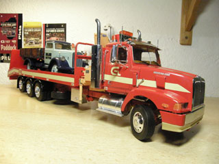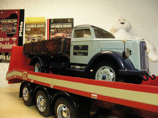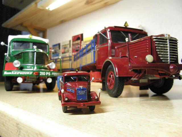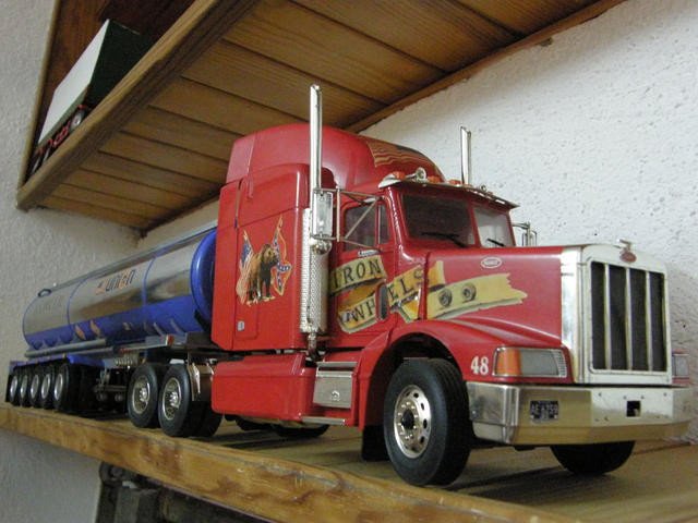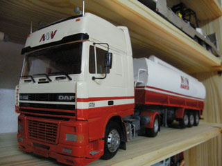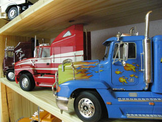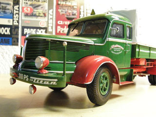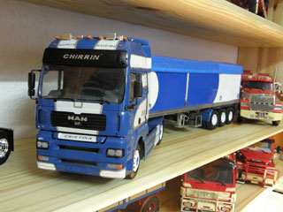 Ahora nos centramos en algunas de las miniaturas que componen su colección,  que si bien empezaba formada exclusivamente por kits montados siguiendo las indicaciones de sus fabricantes, luego se iría ampliando con camiones pintados a imitación de modelos reales o bien terminando un chasis o tractora con carrocerías y remolques creados desde cero, con cartón, madera y plástico, para copiar todavía con mayor detalle la realidad camionera que rodea a nuestro protagonista de hoy.