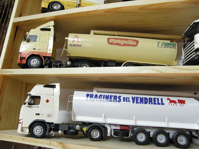 El resto de modelos incluyen camiones de lo más variado, desde espectaculares kits que reproducen lo mejor de las rutas americanas (Freightliners, Mack, Kenworth, Volvo VN, Peterbilt…), hasta otros de marcas actuales que reproducen con total exactitud camiones reales que podemos encontrar circulando por la provincia de Tarragona, desde un Mercedes escala de bomberos, pintado con los logos del cuerpo de Bomberos de la Generalitat de Catalunya, hasta alguna de las grúas que han formado parte de la Flota de Grúas Tarragona.