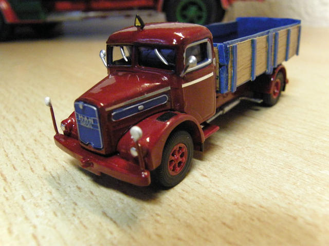 Aunque a una escala mucho menor, HO,  lo que hace que el diminuto modelo quepa en la palma de nuestra mano, el MAN de la misma época ha sido pintado exactamente como el que condujo el padre de José Manuel en la España de hace medio siglo.