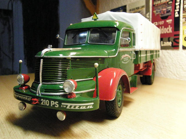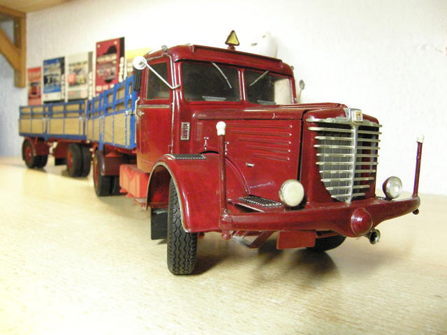 Centrándonos en la espectacular maqueta que podemos ver aquí, el Büssing 8000 tenía una carga útil de 8 toneladas y existió tanto en variantes de 150 CV como de 180 CV de potencia máxima. Eso hace 60 años era mucha potencia y por ello los transportistas se atrevían a duplicar su carga útil enganchando un remolque.