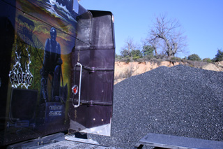 La decoración del Peterbilt recuerda las tierras mineras donde ahora habita.