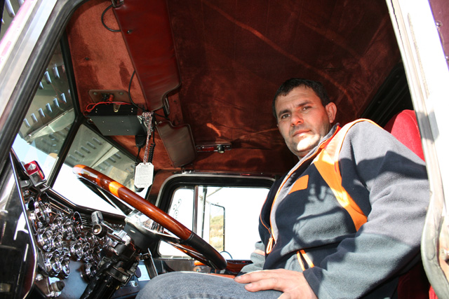 Al volante de su Peterbilt Marcial suele participar en algunas concentraciones.