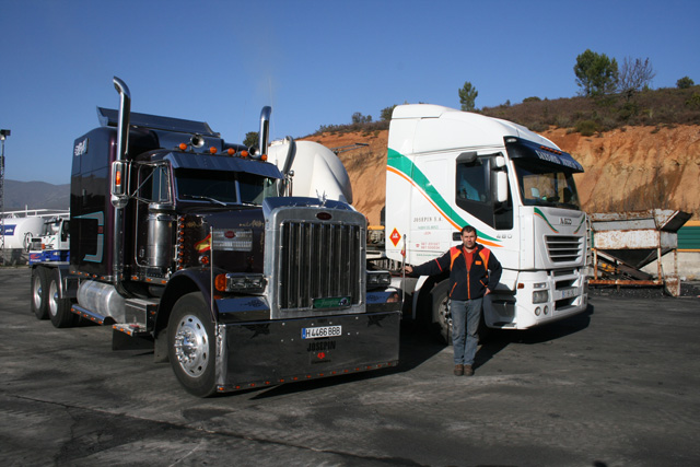 El espectacular Peterbilt junto a uno de los Iveco, estilo USA inconfundible.