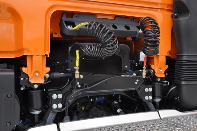 Chasis: Diversas configuraciones de tractora 4X2 disponibles, con hasta 1.500 litros de capacidad de gasóleo, el depósito de Adblue puede ser de hasta 140 litros. Distancias entre ejes en tractora 4×2 de 3,6 y 3,8 metros.