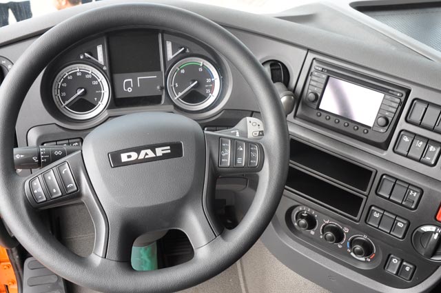 Si nos ponemos en materia y entramos en la cabina del camión dispuestos a ponernos delante del volante, uno de los primeros detalles que notaremos son los nuevos asientos, con un diseño del respaldo novedoso que en principio mejora el confort. Así mismo se ha mejorado el cuadro de mandos, donde el volante multifunción sigue siendo parte fundamental. En el diseño de los nuevos DAF XF Euro6 todo se ha enfocado con el objetivo de mantener los excelentes niveles de consumo alcanzados por los anteriores DAF XF de la serie ATE en versión Euro 5.