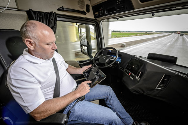 Es de prever que mientras el camión se conduce automáticamente el conductor se dedicará a otro tipo de tareas laborales.