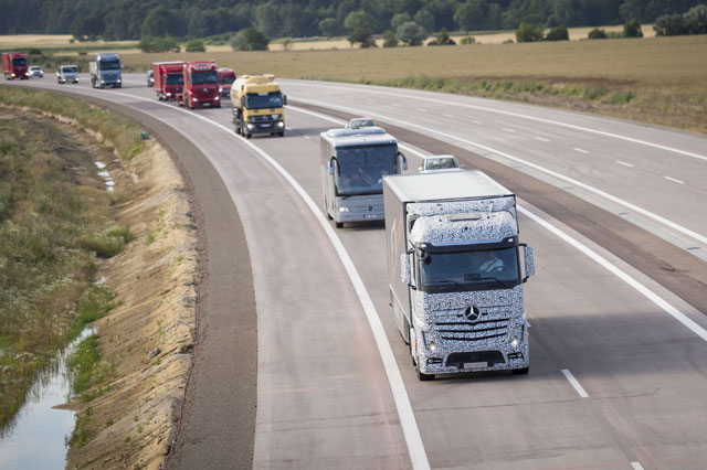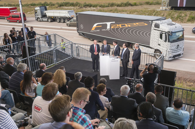 El Mercedes Benz Future Truck es el prototipo, basado como no podía ser de otro modo en el actual Actros, caso de la tractora, además en el proyecto de semi aerodinámico desarrollo conjunto de Mercedes Benz y Schmitz Cargobull, del camión dotado del sistema de conducción autónoma que se espere esté operativo, si la legislación alemana y europea lo permiten, para trabajar en 2025.