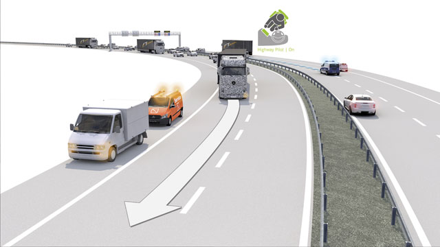 El piloto automático o Highway Pilot tendrá su mayor utilidad en el transporte pesado a larga distancia.