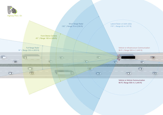 La comunicación y los sensores ópticos y por radar posibilitan el sistema de piloto automático Highway Pilot de Mercedes.