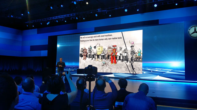 Cogiendo el testigo de Gerd Leonhard, el CEO de Daimler Volker Mornhinweg mostró que tienen esa lección aprendida. Para presentar su nueva estrategia de negocio adVANce quiso primero hablar de los retos de la motorización. El primero de ello es la urbanización. Actualmente el 50% de la población vive en urbes y se espera que para 2030 2/3 partes de los humanos conviva en las llamadas megaciudades. El tráfico, el abastecimiento, la convivencia y muchos más elementos serán puestos en duda. Esto nos lleva al segundo elemento, la electrificación (de sobras conocida) y el tercero, la digitalización.