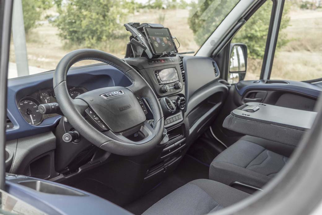 Si a esa mayor cilidrada de lo habitual para un 136 CV, que gracias a ello nos ofrece sus 350 NM a las 2.600 rpm pero se mantiene muy próximo a la cifra máxima desde las 1.400 rpm, le sumamos el excelente trabajo del convertidor de par ZF, Himatic es aquí su denominación comercial, con 8 relaciones y programación electrónica, lo cierto es que circular a bordo de este furgón de la serie BluePower se convierte en algo fácil, tan eficiente com ecológico. No se trata que tengamos que aplicar una conducción especial sinó simplemente que tenemos que molestarnos en aprender de lo que es capaz la mecánica del vehículo y una vez conocido mientras más dejemos trabajar a la tecnología que esta IVECO Daily incorpora pues mejor. ¿Y esto que significa? Pues ni más ni menos que circular en mode automático, a poder ser con el programa ECO y si al salir a carretera utilizamos el programador de velocidad en lugar del pie y el acelerador pues mejor. Seremos más eficientes y ello beneficiará tanto a nuestro bolsillo como al medio ambiente.