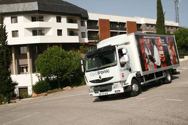 La unidad puesta a nuestra disposición por parte de Renault Trucks además incorpora el cambio automatizado Optitronic. Como ya hemos señalado varias veces, no nos cansaremos de repetir que este tipo de cajas de cambio nos parecen que deberían ser ya el equipo de serie en cualquier vehículo, puesto que ofrecen prestaciones análogas a una caja manual manejada por el mejor de los conductores en el momento en que conduce más atento, mientras que además mejora la durabilidad de los elementos mecánicos y ofrece un confort de conducción infinitamente superior.