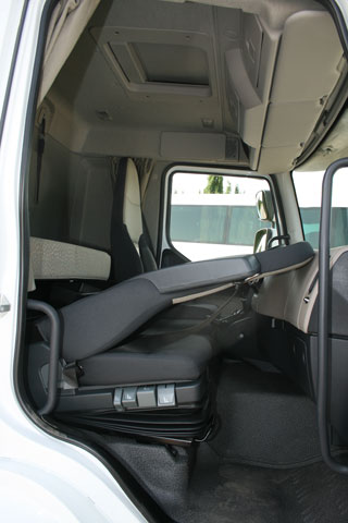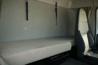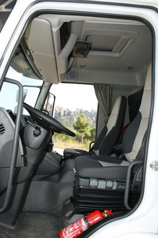 En primer lugar la cabina es la que el fabricante denomina Global. Bajo esta denominación comercial encontramos una cabina con litera de las de toda la vida, que si bien no ofrece ni mucho menos el confort de una gran rutera propia de gamas más pesadas y pensadas prioritariamente para la larga distancia, si que es perfectamente capaz de ofrecer a un solo conductor un lugar digno para pernoctar, gracias a sus dos metros de longitud, que permite disponer de una litera tras los dos asientos.