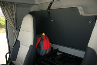 La litera se estrecha tras el asiento del conductor para permitir que éste pueda retrasar su asiento al máximo.