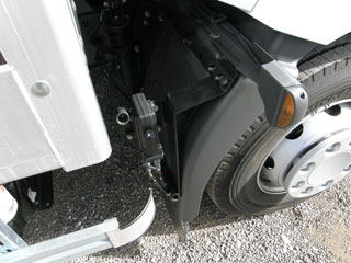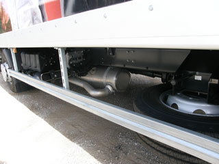 La defensa lateral abatible permite el acceso a los elementos mecánicos y rueda de repuesto.