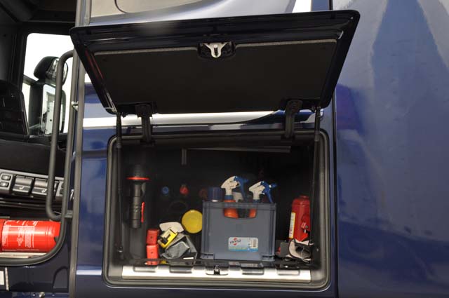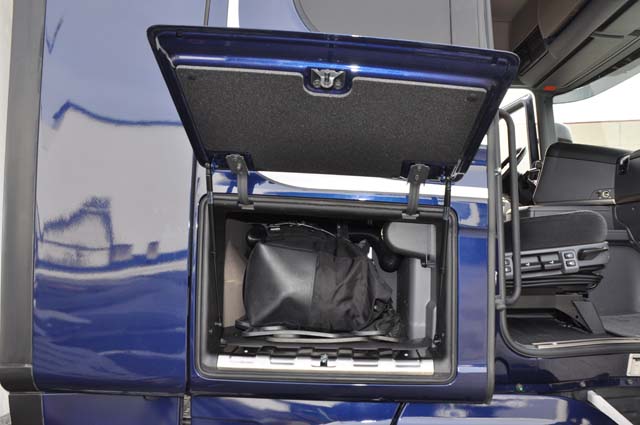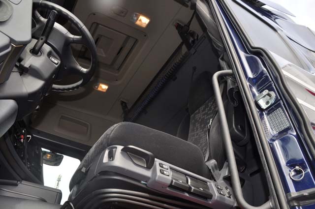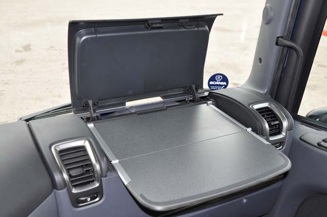 Scania sigue empeñada en no dar a conocer sus nuevas cabinas, y eso en un modelo compacto como el que aquí nos ocupa, de la Serie G en versión Highline, se deja notar. La cabina ofrece una capacidad para alojar el equipaje y las herramientas del conductor correcta, sumando tres armarios frontales superiores, algo justos, a los dos de acceso exterior bajo la cama. La cabina es suficiente para un conuctor y dado que su cama no es de dimensiones excesivas, no nos gusta su ancho dado que los asientos van muy retrasados, nos atreveríamos a calificar este habitáculo como de media distancia. Eso sí, su puesto de conducción aunque corresponde ya a un diseño original veterano resulta muy confortable, agradable y que tiene a un gran número de profesionales entre sus