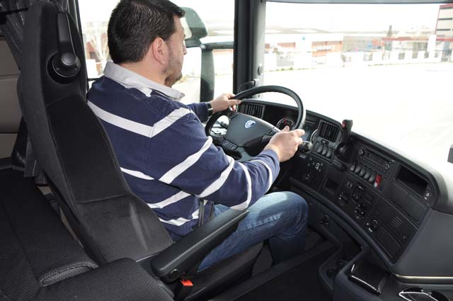 adeptos. Eso sí, los mandos del volante multifunción, con parte de los botones en la parte inferior del aro nos obligan a apartar algo la vista de la carretera. Eso sí, donde Scania da lo mejor de si es en la calidad de acabados y en los equipos de última generación que podemos incorporar. Uno de ellos es el sistema de entrenador personal que incluye el ordenador de a bordo, donde se nos ofrecen todos los datos de la ruta, consumos, diagnosis de los sistemas, etc. En Scania lo denominan Scania Driver Support. Otro