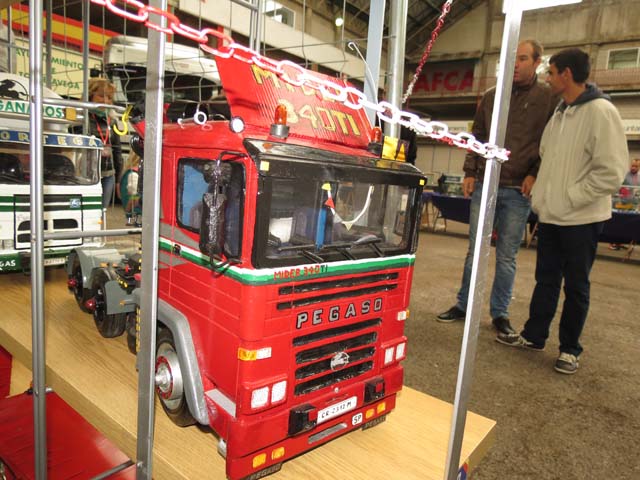 Los hermanos Ortega venidos  mostraron su gran obra. Grande aunque se trate de una muestra de vehículos en miniatura, pues se trata de una serie de camiones realizados en artesanía desde cero, donde encontrábamos desde el típico Pegaso militar 4X4 «Egipcio» hasta una tractora Mider 6X2 con grúa hidráulica incluida, pasando por un Troner 4X4 del team Pegaso Benelux en el Raid Paris Dakar.