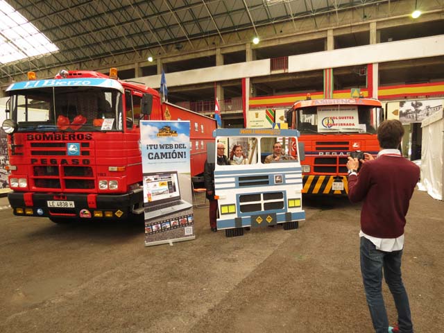 Así mismo y gracias a la colaboración de otro buen restaurador y coleccionista de vehículos Pegaso, Rogelio Cerezales, pudimos exponer una pequeña muestra de algunos reportajes con Pegaso como tema principal. En este caso el camión Pegaso de bomberos 1183 nos servía como inmejorable soporte.
