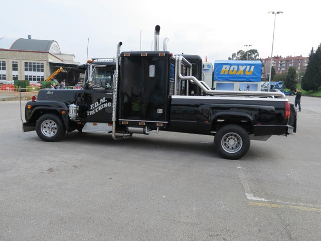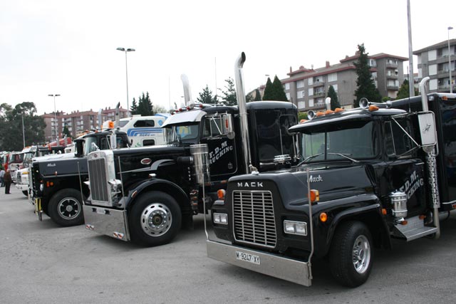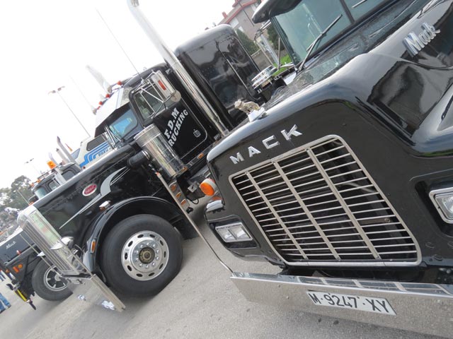 habituales en nuestras carreteras europeas como son las tractoras Kenworth, Peterbilt y Mack. En esta ocasión además una pick up muy especial, con su cabina transformada para así convertirse en un mini-Mack, que sorprendió al público.