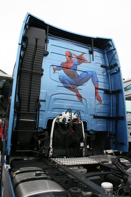 Spiderman viaja en la trasera de este Volvo FH16.
