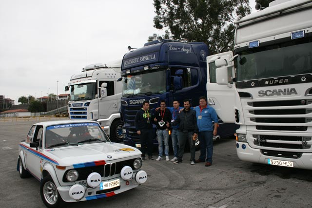 Roberto Carlos junto a sus colegas y unos estupendos Scania más un clásico BMW de rallies.