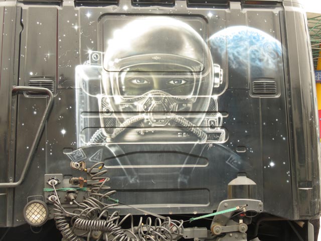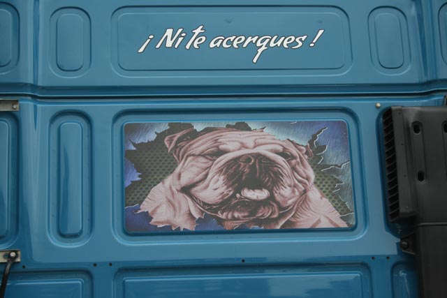 Otra gran máquina, aunque con menos potencia, es el Nissan Atleon de los extremeños Víctor y Ángeles, que pueden decir con orgullo que acudieron a Torrelavega con un camión único en su categoría, pues se trata del único de este modelo habitual en las concnetraciones que puede mostrar su personalización auténticamente camionera y tuning.