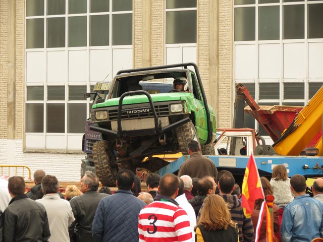 Otra de las novedades de esta edición del festival cántabro fue la pista para vehículos 4X4 de trial, cuyo recorrido en parte transcurría sobre un trailer arrastrado por una espectacul,ar Scania de la Serie T. El público dsifrutó de lo lindo viendo como un Patrol o un Willys es capaz de escalar entre contenedores y